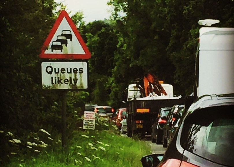 A little fun today…Queues Likely…this was the queue/line going in to one Cotswold town in the summer. So if you are going to search for the road less traveled, off the beaten path and look for hidden gems in the United Kingdom the best and really only way is to hire/rent a car at the airport when you arrive. Of course you will find find differences when driving around Britain, particularly if you have come from a country that drives on the right. First off you will be driving on the left with the steering wheel on the right. You will notice you have a windshield, a bumper, a boot, tyres and a bonnet. You might have a SatNav in the car and you’ll probably have your mobile with you. You will also notice several things as you drive around: There are a LOT of roundabouts. Enter on the left and indicate as you make your turn off. There are tiny roundabouts which barely function and there are huge roundabouts with their own traffic lights. Either way, give way (yield) to traffic from the right. There will be motorways and dual carriageways and you will find many lorries on these roads. There are also tiny single track roads in the country with strategically positioned passing places (for horses). You will drive on a motorway with a speed limit of 70mph – you might find this is an estimate, you can go faster (not advised as traffic cameras are everywhere) or more likely there will be some kind of traffic event and you will be going slower. You will have to stop at pedestrian crossings, either with or without helpful traffic lights. You will also find that roadworks have their own sets of temporary traffic lights – there is no one directing traffic with a Stop sign. Parking is great – parking spots in car parks are quite often tiny and you will more often than not have to pay. Even supermarket car parks sometimes make you pay.