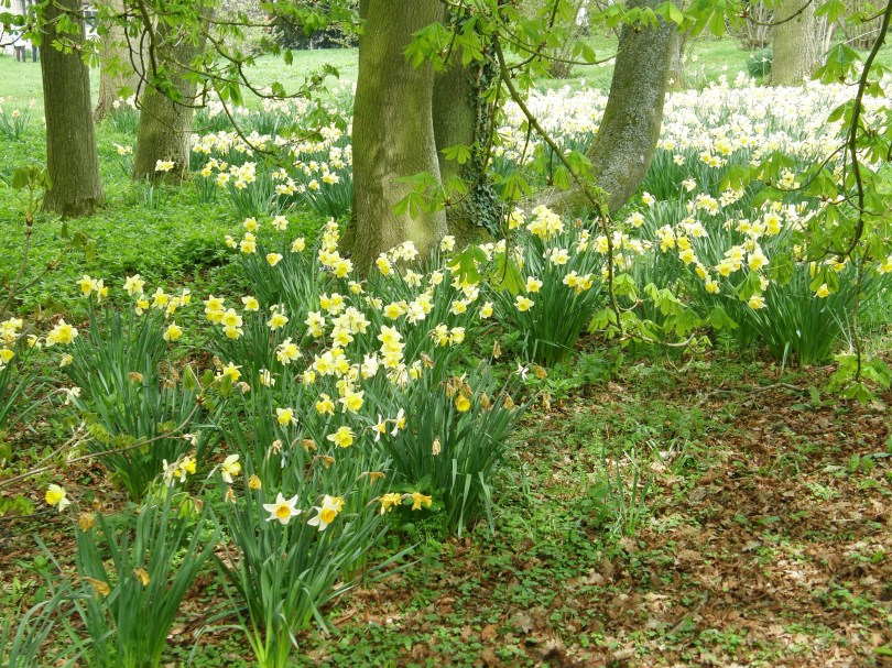 Daffodils are one of the most wonderful sights of spring, a sign of beauty, hope and renewal after a cold, damp and dark winter. Not only can you find their lovely flowers in profusion throughout Britain, the Welsh national flower is also the daffodil and an important part of celebrating St David’s Day on March 1st. For more on St David see my St David’s Cathedral blog. Daffodils, genus narcissus, family, amarylllidaceae, appear to be native throughout much of Northern Europe, but their first home was in North Africa and Southern Europe. The Romans brought the plant to the British Isles almost two thousand years ago, when it was being used for its medicinal properties. However, the colors and beauty of the plant soon became known and it was being extensively cultivated in the Netherlands by the 16th century. Interestingly, while daffofils are famous for being a ‘bulb’ plant, it is also possible for it to be insect-pollinated. The name daffodil is thought to come from the word Asphodel, another popular garden plant. Today of course, the daffodil has been completely naturalized throughout Great Britain.