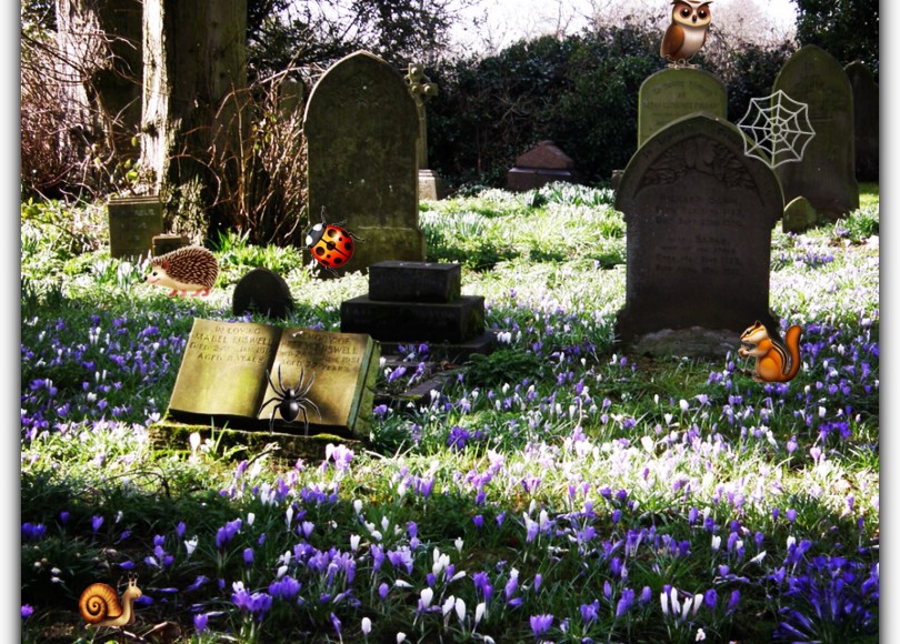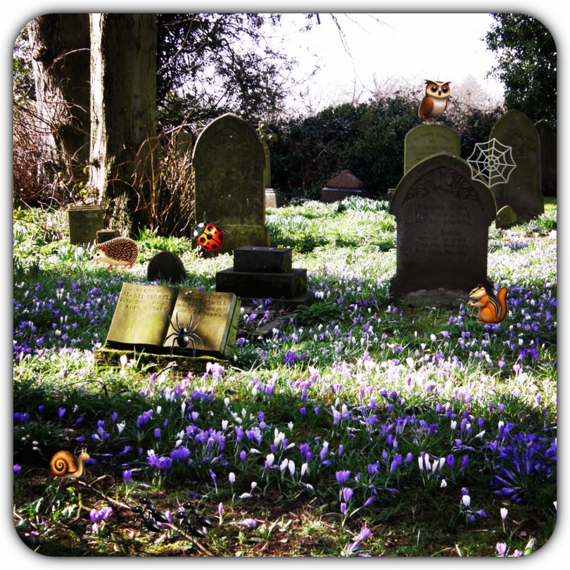 It’s Monday so here is a double dose of happiness, a throwback or look forward to spring AND a little puzzle – so how many critters are hidden among the gravestones?