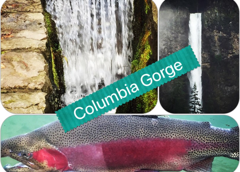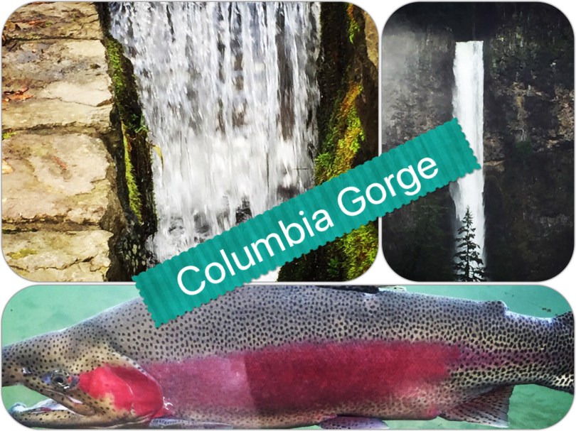 The Columbia River Gorge, Oregon today. The Columbia Gorge is a National Scenic Area. Famous for the Multnomah Falls, photo right, the Bonneville Fish Hatchery left and bottom photos and the Bonneville Dam – all adjacent to the Columbia River. All can be visited in a nice day out, find out about the life cycle of the Trout, check out the Falls and visit the fish counting station at the Bonneville Dam. If you have more time, take a trip along the Columbia on the Sternwheeler from Cascade Locks! These are are only a few things – check out this website for all the info.