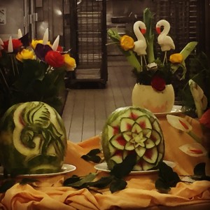 #cruise #cruising @brittrip2017 @rgtmum #holiday #vacation #worldphotos #vegetables #fruit #fruitandvegetablecarving #galleytour