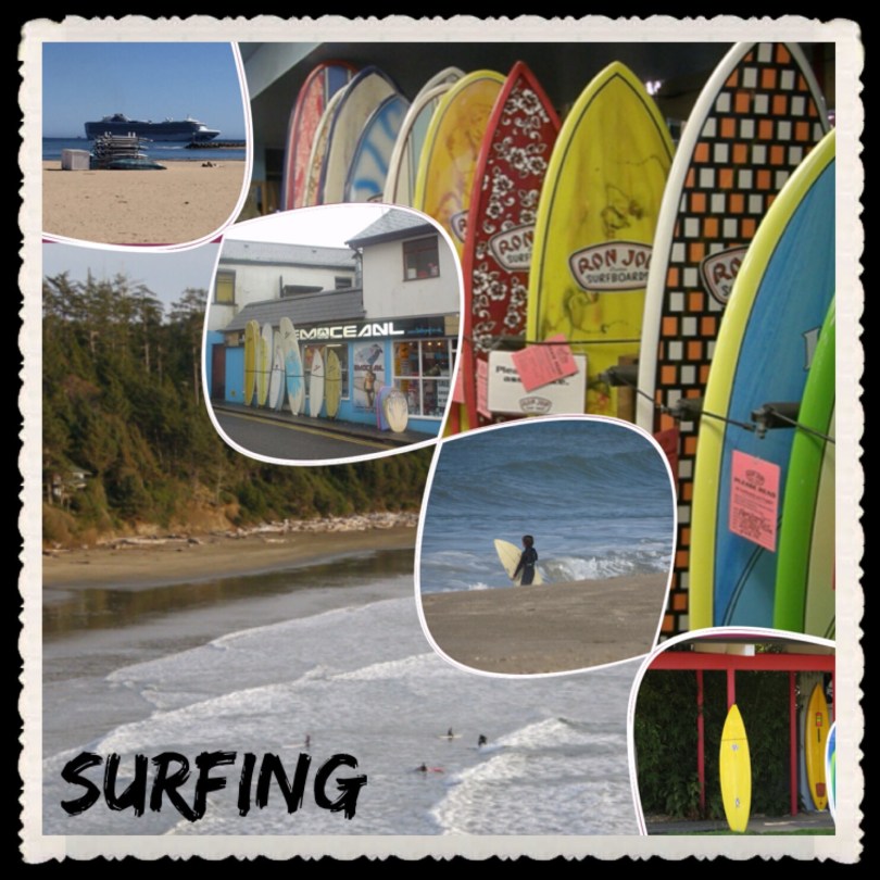 Seagulls yesterday, two surfing pics today! It doesnโt get much better! Top is Santa Barbara, California, Ron Jon Surf Shop, Cocoa Beach, Florida, surf shop, Newquay, Cornwall, UK, Ventura, California, surf shop, Seaside, Oregon, big pic on left is Otter Crest, Oregon. The second pic has an extra bonus pic from Bondi Beach, Sydney, Australia (top left).