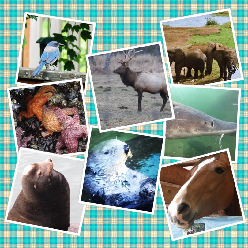 A few of the animals I have come across over the years and I have just realized all except one pic are from Oregon and Washington! Well maybe I will have to dig some more up from other places. I donโt think they are tagged very well. Anyway, from top left, a scrub jay, an elk, a sea star, a sea lion, a sturgeon and a horse are all from Oregon. The elephants are Kenya, and the sea otter is Washington state.