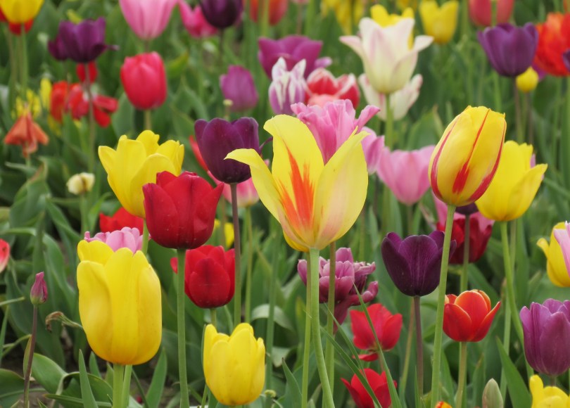 Tulip time in spring is a big deal here in the Pacific Northwest. We have tulip farms in Oregon and Washington. These four lovely, colorful photos were taken at the Wooden Shoe Tulip Festival a couple of years ago. The tulip farm, near Woodburn, is usually open for about six weeks so you can see the entire range of color. This year, up until now, it has been wet and muddy but a brighter few days is forecast. The tulips though, look as beautiful as ever. Two of the tulip farms in Washington are Woodland and the Skagit Valley. Highly recommended for an afternoon excursion.