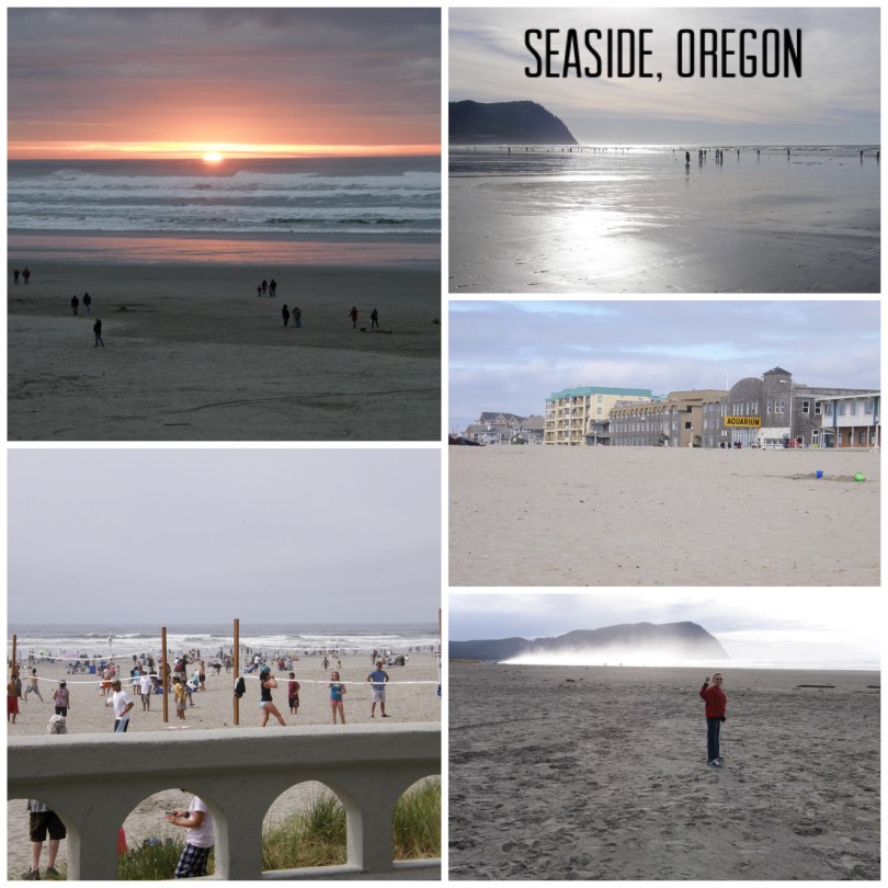 Seaside, Oregon. From top left clockwise, Sunset over the expansive beach, winter scene on the beach, view of the Promenade, foggy beach in spring and summer beach volleyball tournament. Seaside is a fun place, it has a huge beach, great promenade, the Lewis and Clark Tournaround is a great place to people watch. Walk along the Main Street and check out the amusements and restaurants, the carousel of the antique mall. There are plenty of hotels, some have wonderful ocean views. For all the information see here.