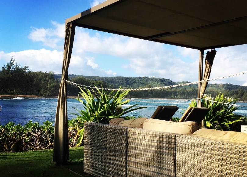 Doesnโt this look nice? Hire a beautiful cabana with a wonderful ocean view at the Turtle Beach Resort, North Shore, Oahu, Hawaii. Or go surfing in Kawela bay…