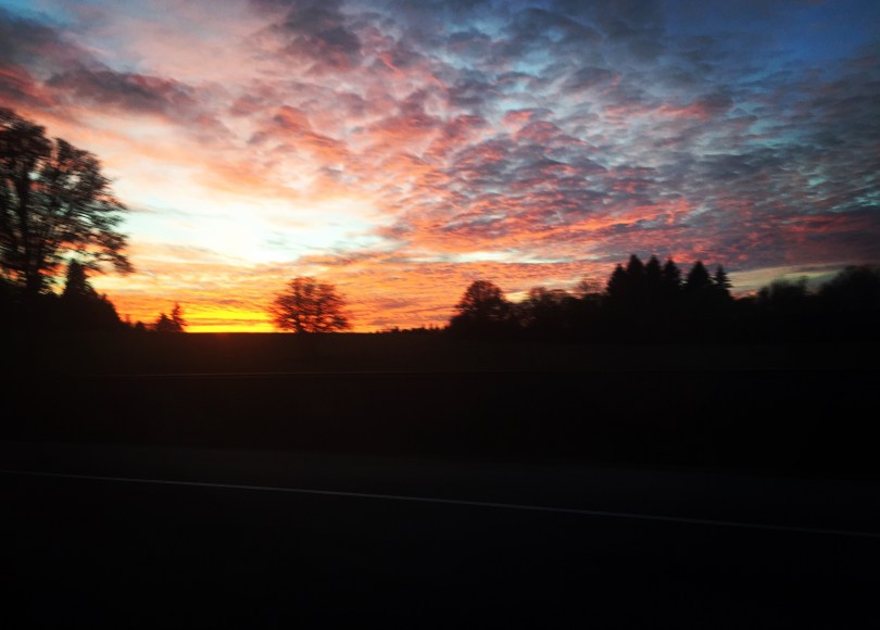 This was the lovely sunset last winter along Highway 99W between Amity and Mcminnville, Oregon. As the days get shorter and days are a little cooler, Halloween and winter appear to be just around the corner.