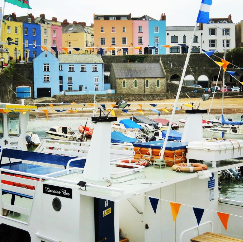 Tenby in Pembrokeshire, West Wales today. This is a bit of a busy photo but you can see the colored houses and the harbor. It is a lovely place and one that I see photos of quite a lot. Check out the city wall and Tenby castle.