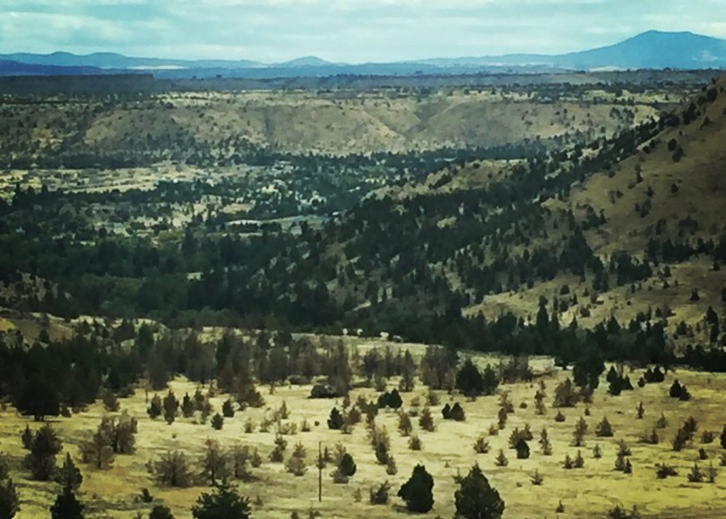 Driving to Central Oregon. Once you pass over the Cascade Range and descend towards Warm Springs, the landscape takes a turn towards less vegetation and deep river valleys. While the Cascade volcanoes, Hood, Jefferson and Three Sisters, follow you down the highway towards Madras, Redmond and Bend. A beautiful and interesting drive.