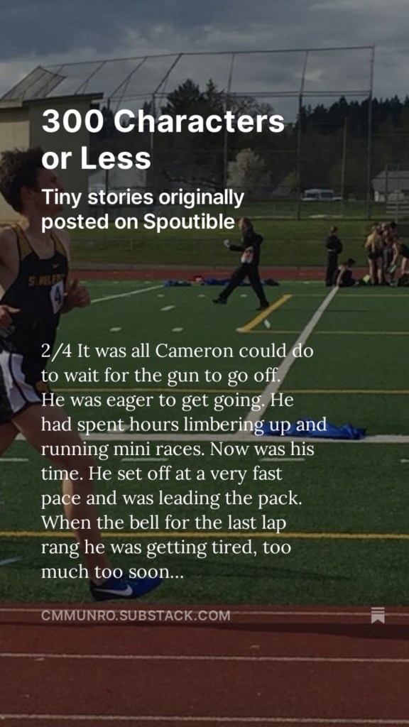 March 5, 2024 travel 300 Characters or Less Posted by BritTrip Tiny stories originally posted on Spoutible Carols Substack High School Track Meet Share this: Click to share on X (Opens in new window) X Click to share on Facebook (Opens in new window) Facebook Like Loading...