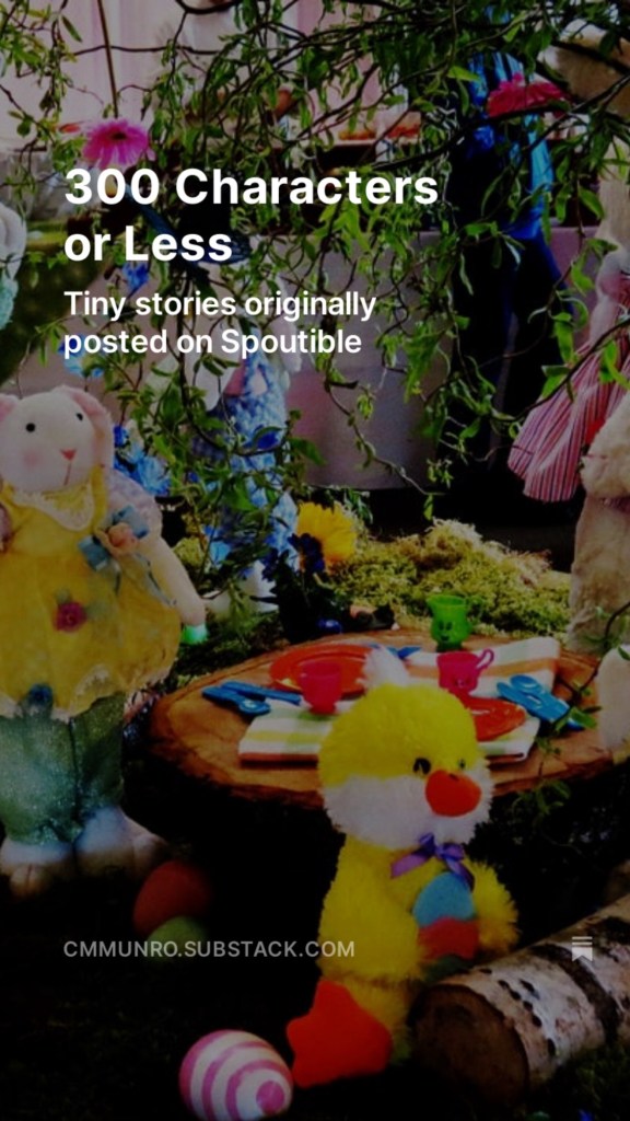 April 9, 2024 travel 300 Characters or Less Posted by BritTrip Tiny stories originally posted on Spoutible Carols Substack Easter! Share this: Click to share on X (Opens in new window) X Click to share on Facebook (Opens in new window) Facebook Like Loading...