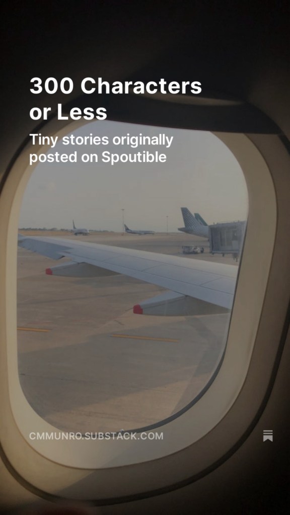 April 11, 2024 travel 300 Characters or Less Posted by BritTrip Tiny stories originally posted on Spoutible Carols Substack Airplane Share this: Click to share on X (Opens in new window) X Click to share on Facebook (Opens in new window) Facebook Like Loading...