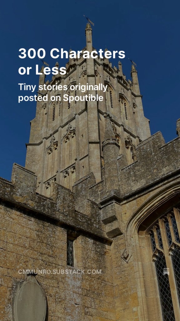 April 17, 2024 travel 300 Characters or Less Posted by BritTrip Tiny stories originally posted on Spoutible English Church Carols Substack Share this: Click to share on X (Opens in new window) X Click to share on Facebook (Opens in new window) Facebook Like Loading...