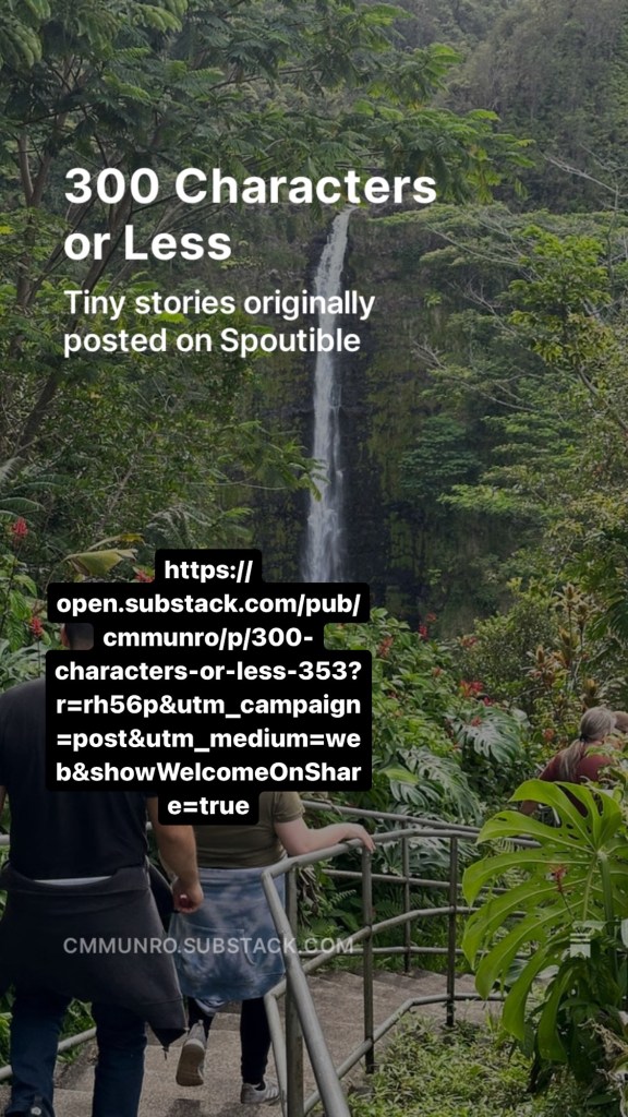April 26, 2024 travel 300 Characters or Less Posted by BritTrip Tiny stories originally posted on Spoutible Big Island Hawaii. Carols Substack Share this: Click to share on X (Opens in new window) X Click to share on Facebook (Opens in new window) Facebook Like Loading...